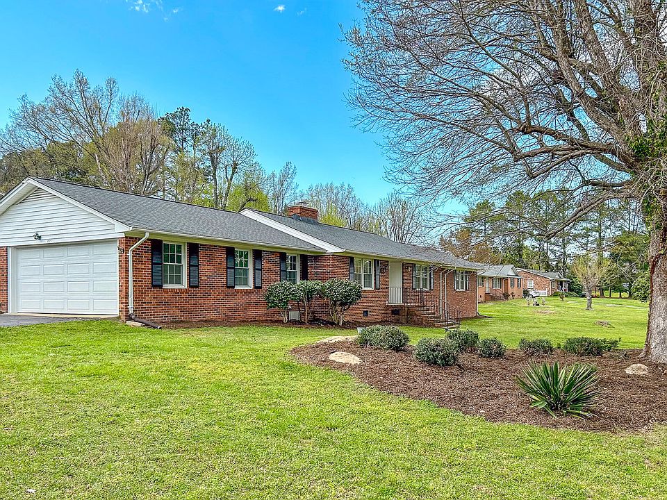 PRICE REDUCTION!! If you've been waiting on a house with loads of space, look no further! This spacious brick ranch, which has been freshly painted inside, features 2 primary suites, each with their own extra room, which could be used for an office, a nursery or whatever your imagination decides, along with their own private bathrooms. There are a total of 3 bedrooms and 3 full baths in this home, which also has replacement windows, a formal living and dining room and a cozy den with a fireplace and original hardwood flooring. The rest of the home features luxury vinyl flooring in all rooms and ceramic tile flooring in the bathrooms. Out back, sit and enjoy your morning coffee or evening tea on the spacious brick patio. The home is conveniently located just outside the city limits with city water service, but no city taxes! There is also an unfinished basement under a portion of the home! Also new to the home in the last 2 years are a new garage door for the 2-car garage, security cameras, gas logs, stove, oven, hall bath toilet and electrical panel.