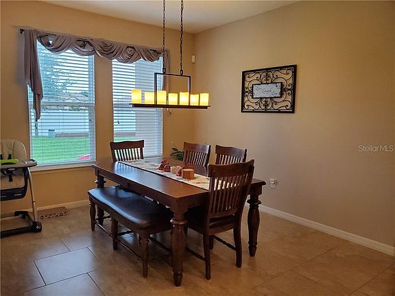 Apopka Beauty ! She offers 3 bedrooms, 2 baths plus den/living room has a 3 car garage Oversized and Deep. Stunning kitchen with 42' cabinets, with pot draws, a lazy susan, a Gorgeous backslash and lots of counter space. An Open floor plan concept, with a separate dining room area off the kitchen, triple sliding doors leading covered patio to the Huge yard. This lot is flat and Oversized lot. It also has a utility sink, a drop stop area, cabinets in the laundry room and a home water filtration system. A nice covered front porch with beautiful glass front door. This community offers a playground and walking/ biking trails with Tons of nature beauty all around you. Close to shopping, restaurants, expressways and 6 miles to Kelly park/ Wikiva Springs State Park.
