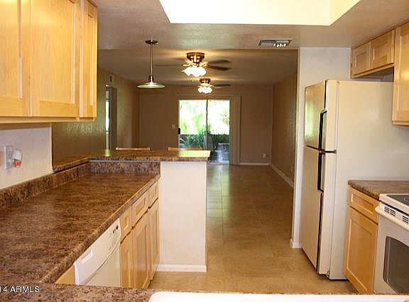 Walk to Paradise Valley Mall,park & ride,51 freeway.Remodeled 2012,new kitchen cabinets,counter tops,lights, electrical,4 ceil fans & tile 20x20 flooring throughout. New AC 2006, electrical box 2011 & window screens 2014 kitchen & guest bedroom. Unit interior painted 2012 in neutral colors new baseboards. Nice blinds throughout. Plumbing quarter turns. Master split bedroom walk in closet, shelving, separate room bathtub & toilet. Big space in master closet & bath. Back patio overlooks greenbelt & master bedroom separate entry to back patio.Guest room sliding glass doors lot's of storage. Guest window overlooks front patio. Enclosed private front patio gated entry. Storage unit good sized, no popcorn ceiling in house. TENANT LEASE ENDS OCTOBER 2014 @ 750.00. GORGEOUS UNIT WELL CARED FOR!