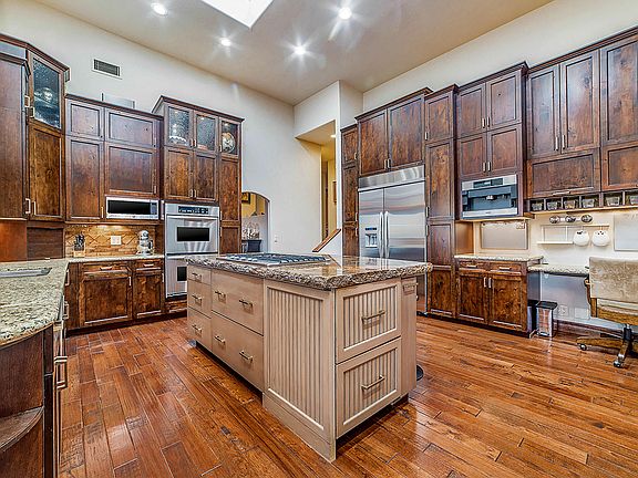 * Sited on premium corner view lot & beautifully updated, features incl gleaming hickory wood flrs, gorgeous eat-in kitchen completely remodeled w/ knotty alder cabinets, ss appliances, built-in Miele coffee maker, double-thick chiseled granite counters @ center island w/bar seating, all open to window-lined great room w/fantastic city & mtn views;soaring wood-beamed ceilings, city lights also twinkle from the formal dining & living rms, split bedrm w/gracious owner's suite, incl private sitting rm w/FP, more city lights can be viewed from bed, & luxurious spa-like bath featuring dual vanities w/ Taj Mahal granite, floating mirror, soaking tub & deluxe shower, dual closets & bonus storage area! ADD'L PROPERTY DESCRIPTION UNDER ''MORE'' Owner is licensed to sell real estate in AZ
