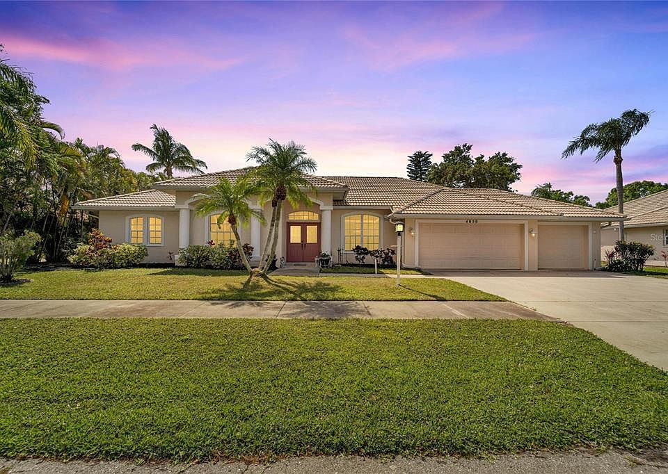 Tucked away in a small enclave with just 11 homes, this home is located in the heart of Sarasota. Featuring an open and inviting floor plan with high ceilings. The split floor plan offers privacy with the additional bedrooms located on the opposite end from the owner's suite. This home has all the space you need with large bedrooms and plenty of storage space! The kitchen opens to a large living space with windows allowing natural light to fill the home. A breakfast bar and additional space for casual dining offer plenty of seating. An oversized pantry and plenty of cabinets offer ample storage space for all your kitchen essentials. Sliding doors lead out to the back patio, overlooking a pond. The main suite offers plenty of space and features large windows with french doors leading out to the back patio. An equally spacious en-suite with a garden tub, walk-in shower and a walk-in closet is just steps away. The office/den provides the perfect work space with french doors that can be closed for privacy or could even be used as a 4th bedroom as it contains a closet. A 3 car garage allows for more storage. Located in a highly sought after school district and central to Sarasota's beaches, downtown, dining and the arts. Come make this home your own.