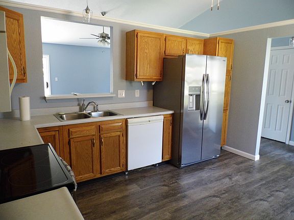 Fresh paint, new flooring throughout, new kitchen appliances, and new ceiling fans. Move in ready. This home features 3 large bedrooms, 2 car garage, 2 full baths, a tub/shower combo and a walk-in shower in the master, there is also a fenced yard and storage shed.