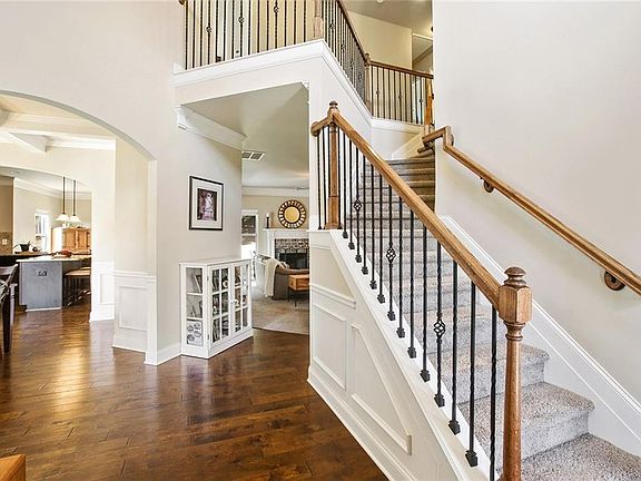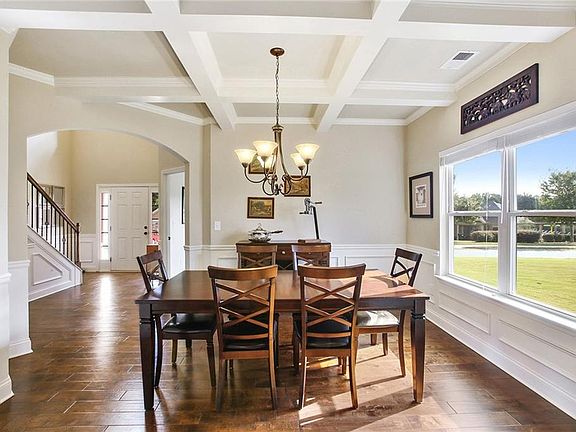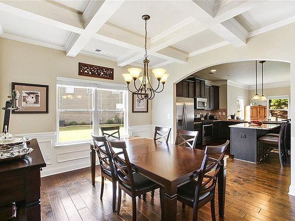 Luxurious better than new home in beautiful Hunters Walk steps away from pool and tennis. Dramatic 2-story foyer invites you into this beautiful home. Formal dining room with stunning coffered ceilings and gorgeous kitchen with island, granite counters, walk-in pantry, breakfast area. Kitchen opens to a large great room. Gorgeous hardwoods throughout. Bedroom and full bath on main floor. Upstairs is an oversize master with large sitting area and spa retreat complete with grand closet along with three good size secondary bedrooms. Enjoy the private backyard, top schools.