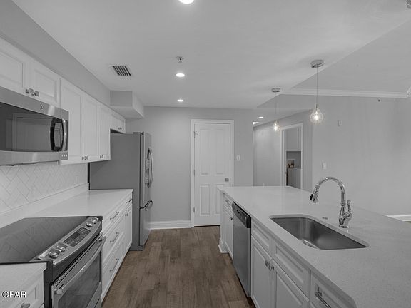 Newly renovated 3 bedroom, 3 bathroom second floor condo in The Grand in Bay Point. Unit features all new Mannington Adura Max flooring, kitchen cabinets with soft close hinges, quartz countertops, paint, light fixtures and fans. The Grand features resort style pool, hot tub, fire pit, BBQ grills, fitness facility, community space and spectacular landscaping. Bay Point has 18-hole Jack Nicklaus design golf course, new marina is under construction with expected completion in October 2021, and 24 hour roving security. Unit has large separate storage unit located on same floor as unit.