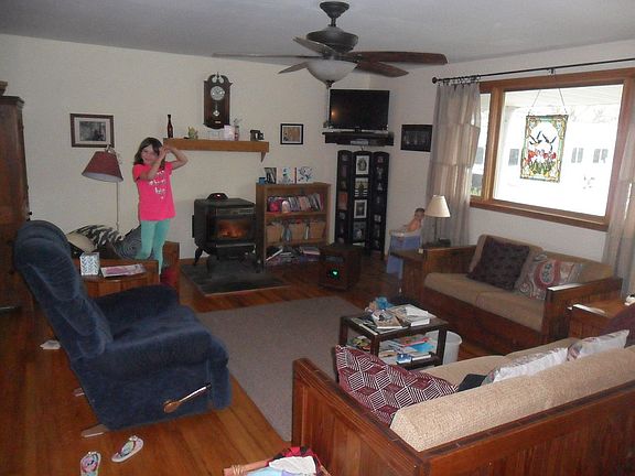 House with open floor plan and all hardwood floors except kitchen and bath has real slate floors. Low utilities with pellet stove. May sell washer and dryer separate.