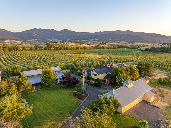 Located between Ashland and Medford, 4050 Royal Crest sits in one of the region's most desirable rural areas. The centerpiece of this 34-acre property is a custom farmhouse-style home that is full of character, with warm finishes and multiple living and dining spaces. The updated kitchen features a large island, great views and professional-grade appliances. The primary suite features vaulted ceilings with wood beams, a woodstove, incredible views, and a large private bathroom. Designed for indoor-outdoor living, the home opens to a brick patio, pergola, custom pool, and mature landscaping. Outbuildings include a three-car garage with additional utility spaces and a rustic barn with charming upstairs guest quarters. Currently a producing pear orchard, the irrigated land is primed for vineyard conversion, equestrian use, or as a small ranch. Gravity pressurized TID Water Rights. A rare blend of location, infrastructure, and potential, all framed by panoramic views of the Rogue Valley.