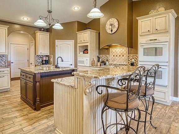 This custom homes gives you the opportunity of Country Living but still in the City. This unique setting with a custom build home can be hard to find. Featuring 4600 total sf. home w/2400 main-level offering 3 bed, 2.5 bath, gourmet kitchen surrounded w/gorgeous granite, cream glazed cabinetry, a large center island & breakfast bar with top of the line white appliances, walk in pantry & all opening to an over-sized dining room w/tray ceiling detail & heated tile. The large living-family area features a high vaulted ceilings & gas fireplace w/rock surround custom window treatments & leads to a private office area & 1/2 bath. The bedrooms are a great size with 2 main level bedrooms, lg bath, laundry room, master suite w/ 5 piece bath all on one level. 38X34 garage, private water well & more.