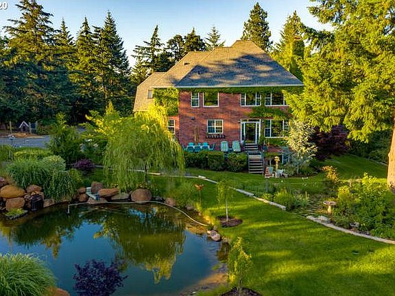 Nineteen acres of towering, fir, pine and oak trees with majestic views of Mt. Hood and Mt. Adams, organic 800 vine vineyard, koi pond, small orchard, and year round stream provides an ideal naturalist setting for this exquisite European-inspired chateau made of structural brick. The architectural design optimizes views from almost every room while offering a modern, open floor-plan. Located in a world-renowned outdoor recreation, beer, and wine destination with close proximity to Hood River.
