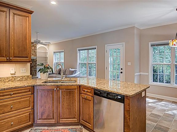 Two story brick house with beautiful stone fireplace and main level garage. 4 Bedrooms, 3.1 baths, large bonus room, front and rear stairs, main level laundry, kitchen that opens to breakfast nook and living room, main level study. Private back yard with additional partial lot for rear privacy. Tall crawlspace for additional storage and neighborhood pool! Less than 10 minutes from Wake Forest University and Downtown Winston!