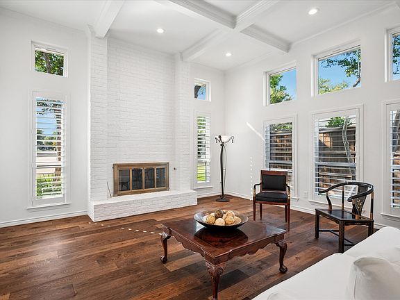 What a beautiful home from the curb! The striking double door, updated windows complete with shutters and the native landscaping. What a sight to behold, the pride of the original owner shows on this custom home built by Joe Keim Builders. Upon entering, you can see how light and bright the home is, and wide plank engineered wood floors in all directions, even up the stairs with white risers. To the left is a spacious living room complete with fireplace, coffered ceiling and a wall-to-wall built-in that includes a serving counter, bar sink and copious cabinets for storage. To the right of the entry is the formal dining room with a transitional chandelier with gold tones and a wall of custom millwork. Moving into the breakfast room there is another built-in with countertop and upper and lower cabinets and French doors that take you out to the open patio and huge backyard. Adjacent to the breakfast room is the kitchen with a bar and floor to ceiling cabinets on all three sides. The pallet is neutral and can complement anyone's style. Continuing on the first floor is the primary bed and bathroom. Every surface has been updated, and the bathroom was completely made over with a free-standing tub and separate walk-in shower with glass surround. Also on the first floor is another bedroom and separate bath with a walk-in shower. The second living area is nestled in the back with a great view of the yard, built-in cabinets and wet bar. Upstairs is the cutest landing complete with floor to ceiling shelves, ideal for a comfy chair for an afternoon of reading. The second floor is rounded out with two bedrooms and a double vanity bathroom. The property has so much to offer and more, come and give it a look!