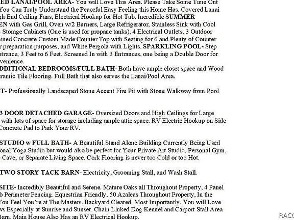 WELCOME HOME to this AMAZING, TASTEFULLY DECORATED, Equestrian Friendly, one of a kind, Pine Ridge Pool Home w/ some of the Coolest Design Features you will Ever See. Here are the highlights (see picture section for list) You will love your Large Master Suite w/Private Office, Library, Ample Walk in Closet, & Beautifully Renovated Bathroom. Lanai/Pool Area w/an Incredible Summer Kitchen & a Stone Firepit Area to Finish the Evening Off In Style. Numerous Outbuildings for all your Needs including a 3 Car Oversized Detached Garage, 20 X 24 Building with Full Bath & 2 Story Tack Barn. Incredibly Functional Kitchen w/Granite Counters, Large Eat in Area, & High-end Stainless Appliances. 3 Different Living Spaces including a Great Room w/Stone Accent Romantic Fireplace, Large Game Room/Craft Room, & Quiet Sitting Room(Dining Room) w/Coffee/Wine Bar. There is more, including a Home Site that is unbelievably serene w/4 Board Perimeter Fencing & an awesome Eastern View. Yes, incredible Sunrises & Sunsets! Home Site had horses in the past & could be put back quickly to accommodate. Concrete Pad to Park Your RV (Electric Hookup) Two Additional Bedrooms w/ample closet space & a Full Bath that also serves the Pool. More Good News- Roof replaced in 2019 & HVAC replaced in 2017. Words and Pictures could never do this home justice, the second you step on the property you will understand how special this home is and more importantly you will feel the peaceful easy feeling.
