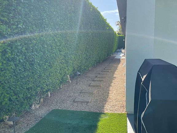 Find your perfect sanctuary at this stylish single story secluded retreat home in the heart of Palm Desert. The house is tucked back into a cul-de-sac neighborhood which is ideal for families and kids. The front door is gated with a front salt water zen type pool. The backyard is perfect for bbq and games with a desert landscape and turf grass through out. Master suite with huge walk in closet and floor length wood shutters gives the maximum privacy. The other two bedrooms are good size and one has a built in desk to be used as an office. Each room is equipped with a ceiling fan and central AC through out the house. The house features two living rooms with smart TV'S and surround sound built in. 2 car garage and brand new washer and Dryer in laundry room. The kitchen space is an open floor plan with middle granite island, stainless appliances and walk in pantry. The shutters through out the home are all automatic and remote operated. This home is conveniently located near plenty of shopping and dining options to enjoy. Do not miss out on this opportunity. Schedule a private showing today. 1 Year lease preferred Partially Furnished Small Pets on approval and w/ additional deposit Verifiable Monthly Income of 3 Times the Rent (Proof of income required with either bank statements or check stubs) No Prior Evictions Good Rental History - 2 years minimum Owner pays for gardener and pool maintenance. Renter is responsible for electric, water, gas and wifi. No Smoking