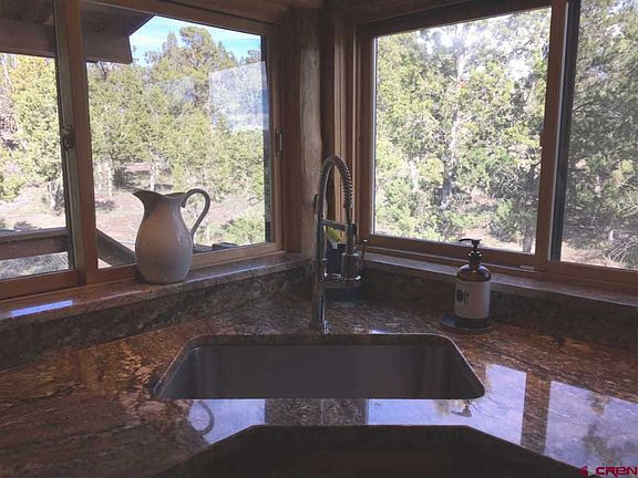 This charming property must be experienced in person to feel the essence of it. From the totally remodeled log home, with its warm wood floors, beamed cathedral ceiling and gourmet kitchen to the detached metal garage and workshop . . . the attention to detail is evident throughout. The home is D log construction for a real Colorado ambiance, yet is light and airy throughout. On the entry level are two spacious bedrooms and a huge full bath with an oversized custom shower and slate floors, all with radiant heat. The second level is a delight! An open floor plan, with high beamed ceilings and windows on three sides for plenty of light, which just wraps you in a wonderful ambiance. This central living area has wood floors and encompasses the kitchen, living and dining rooms, a cozy south facing sunroom, plus a family/media room with a wet bar. The huge cook???s kitchen, complete with a massive granite peninsula, a DCS (FisherPakel) chef???s stove with 6 burners plus a griddle and double ovens, a DCS 2 drawer dishwasher, and a Subzero fridge/freezer . . . leaves nothing to be desired. There are plenty of different spaces for entertaining and hanging out whether in the sunroom or in front of the two freestanding stoves, (one wood/one propane) or out on the wrap-around covered deck for enjoying the serene setting and views. There is also a pantry and laundry room on this level and a full bath complete with a claw foot tub. The master bedroom, half bath (which could be enlarged) and the office loft area are accessed from a rustic wide plank staircase of pine that continues throughout this upper level, which literally has a wall of closets. So no lack of storage space!These are only the obvious features. Nothing was spared on the systems either. The solar panels on the roof feed the hydronic heating system, in the attached garage, to provide the 6 zone radiant heat and hot water, both with seldom used backups of a boiler and an on-demand water heater. There are 5 fans throughout the house to circulate heat and air. Also on the property is a barn with stalls and tack room, a hay or RV storage open pole barn, and storage and wood sheds. Plus the 'to-die-for' 1200 sf detached garage/workshop, built in 2013, with modern glass doors AND in-floor heat from a Munchkin boiler (on its own propane tank). It even has a deck and hang out area. Definitely a deluxe shop. NOTE: there is an irrigation ditch (and easement for such) that runs through the property which is seasonal live water to enjoy but there are not water rights for its use. The entire property is dog friendly and perimeter fenced with a separately enclosed back yard area for dogs. All this is privately located on 3 acres in the Mancos valley with great southern exposure and lovely Mesa Verde/Point Lookout views. The rest you just have to experience for yourself!