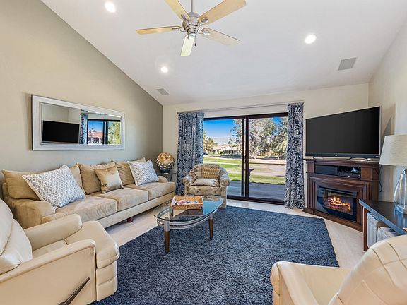 Palm Desert Resort Country Club is an expansive community including championship golf course with a pro-shop and snack bar, 20 saltwater community pools and spas, and 14 newly upgraded tennis/pickleball courts. Homeowners can take advantage of all the amenities the country club offers, including their recently renovated full-service Clubhouse with a formal dining and lounge area overlooking the lush landscape and course. Live in this newly remodeled 2 bedroom, 2 bath home featuring finished floors carried out throughout the space. Featuring an open floor plan with high ceilings, a cozy fireplace frames the family room that flows into an upgraded kitchen overlooking the dining area. Each bedroom offers an en-suite bath, a large closet, and updated dual-pane windows with window treatments. Surrounding the property is a large outdoor patio overlooking the golf course and mountain views, perfect for entertaining and outdoor relaxation. The large attached two-car-garage has ample storage, with a large alcove for your washer and dryer. The home has been updated with dual pane windows, a water purification system, a surround sound system and a beautiful electric fireplace. Use as an investment property for short-term renters or a place to enjoy a weekend getaway from busy city life. This fully furnished unit in the exclusive Palm Desert Resort Country Club luxury resort and residential community will not disappoint and you'll want to stay!!