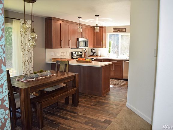 Beautiful Hart's Lake Home on 5 Acres! Private Setting, Beach Access and Partial Lake View. New Custom Kitchen, Quarts Counter Tops, Open to Family Room and Dining Room makes this a perfect home for Entertaining! Large Master Bedroom w/ Sitting area or Office, French Doors from Master lead to private Balcony. Gorgeous Tile Floors, Stainless Steel Appliances, Updated Powder Room off Entry Way. This home sits on 5 Private Acres. Additional Outbuilding for Storage, RV Parking and Close to JBLM.
