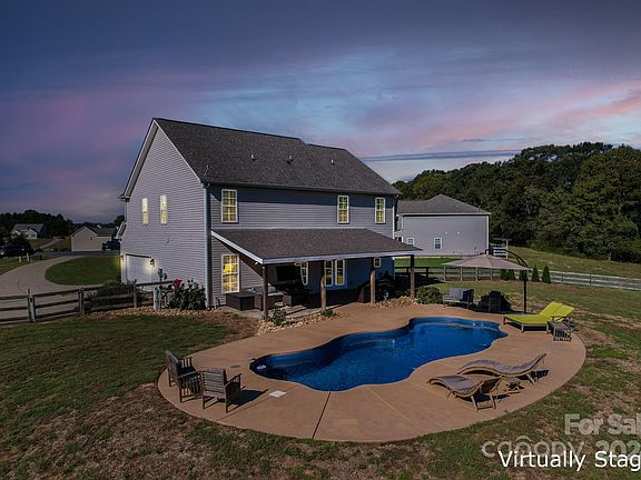 Vacation at home with your own in ground salt water pool! Amazing opportunity to own this gorgeous home situated on a 1 acre cul-de-sac lot! The main level features a spacious family room, a dining room with a shiplap accent wall, and a fabulous kitchen that will delight the cook in the family with stainless appliances, a butlers pantry, a storage pantry, breakfast bar, ample cabinets, granite counters, and a tiled backsplash. On the upper level you will find the primary suite with tray ceilings, an en suite bath with separate shower and garden tub, 3 additional bedrooms and another full bath. All appliances remain including the kitchen and garage refrigerators and the washer and dryer. Enjoy the relaxing view from the covered patio or cool off in the pool. No HOA in this community. Pool has a 20 yr fiberglass pool liner. HVAV serviced in 2023. Put this one on your must see list!