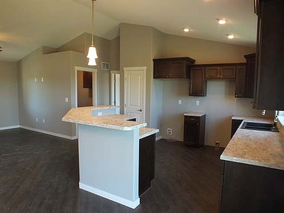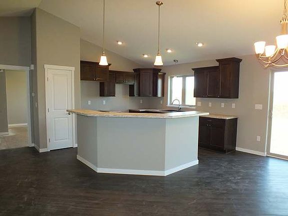 New construction ranch style home located 20 min west of Mandan sitting on 3.44 acres. The main floor features a large kitchen with center island, dining room with glass siding door leading to the backyard, living room, laundry room, full bathroom and 3 bedrooms. The master suite has a walk-in closet, tile shower surround, whirlpool tub, and double sinks. The Lower level is unfinished but has been framed. The 3 stall garage has a floor drain and hot an cold water. Zoned for 1 horse. $2,500 appliance allowance. Call an agent today to look at this peaceful setting.