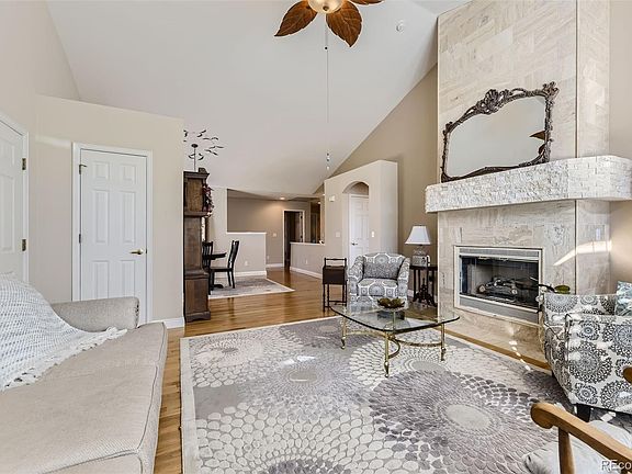 The main living level boasts a cozy family room with a fireplace, a formal dining area, and an eat-in kitchen equipped with stainless steel appliances and granite countertops. A glass door leads to a new covered Trex deck, ideal for relaxing or hosting gatherings. Enjoy energy-efficient heated tiles in the secondary main floor bedroom, complete with its own thermostat for personalized comfort.