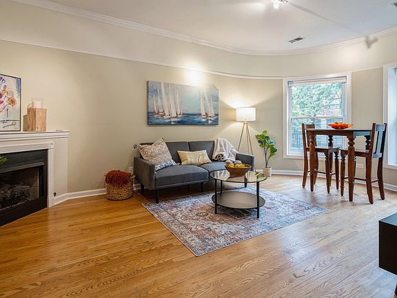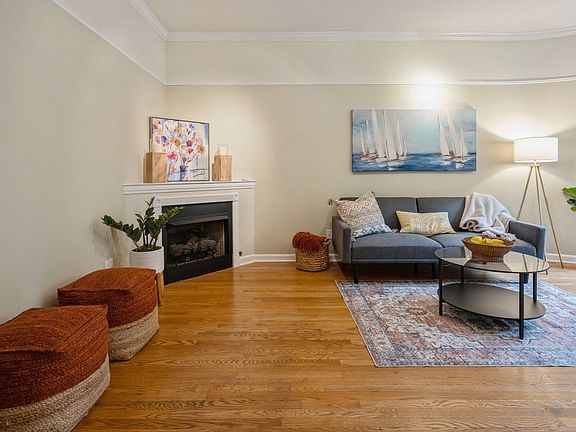 PRIVATE Entrance in this spacious Buena Park condo. Charming historic building of only 15 units. Private entrance with mudroom accessible from hard to find, gated backyard, brick patio, & deeded parking (at additional cost). 1 block from the "L" and minutes to the Lake & Wrigley Field. Why rent when you can own a condo that features large living room w/gas fireplace, crown molding & picture rail. Washer & Dryer in-unit, hardwood floors, large bedroom with crown molding and rope light accent & GIANT closet! Expansive eat-in kitchen with ss appliances. Super clean and lots of updates...carpet 2022, water heater 2021, dishwasher 2021, disposal 2022, stack washer dryer 2020, furnace/ac 2019. Bike storage room and additional private storage! Make this move-in-ready gem your own! Great gated patio for outdoor enjoyment. DEEDED PARKING space available at an additional $25,000. Keyed bike storage included!