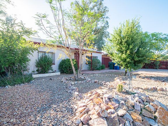 Classic mid-century, mud adobe home. This centrally located 2 bed, 1 bath home sits on a nearly quarter acre lot. Nestled in a quiet neighborhood, close to the UofA, tons of shopping, and the Rillito bike path. Kitchen has been remodeled with new cabinets, counters, and appliances installed in 2018. New flooring in the living room, bathroom, and primary bedroom. Bathroom updated in 2018. Ceiling fans in every room. Lush landscaping in both front and back yards. Huge backyard has a covered patio, a free-standing gazebo, mature pomegranate and eucalyptus trees, and a new (2020) large shed with lights and power. Brand new roof and gutters installed in 2022. Entire house replumbed to PEX in 2018. Sellers have an assumable VA loan and are open to a loan assumption by a qualified VA buyer.