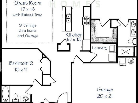 - 1st Bdrm En Suite, Breakfast Bar, Ceiling-9+, Tray Ceiling(s), Walk-In Closet(s), Laminate Counters, Entrance Foyer, Kitchen Island, Open Floorplan, Wired for Data, Wiring-Smart Home, Tub/Shower Combination, Main Level Bedroom Suite, Great Room