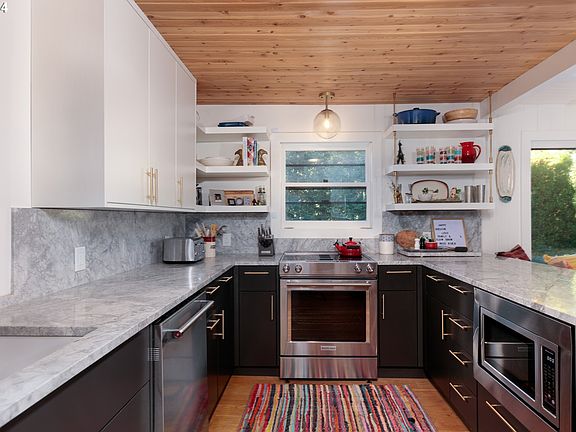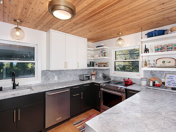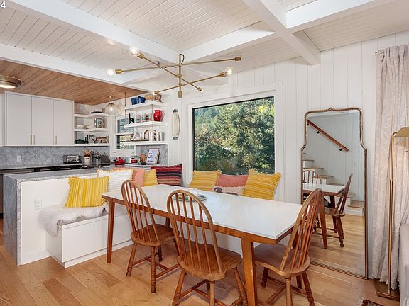 Nestled in the vibrant heart of Hood River's Eastside, discover this exquisite remodeled home set on a serene 2.53-acre parcel. Every detail exudes luxury, from the beamed cedar T&G ceilings to the quartzite counters with a stunning waterfall edge. Step inside to discover the allure of white oak floors and fresh exterior and interior paint completed in 2020. Custom barn doors adorn the den, adding a touch of rustic charm. French doors beckon you from the living room to a spacious deck, offering sweeping views of majestic Mt. Adams, a perfect setting for entertaining or simply soaking in the natural beauty. Retreat to the generous primary bedroom, complete with laundry facilities for added convenience. Outside, a sizable barn brims with potential, ready to fulfill your vision. Embrace sustainable living with owned solar panels, enhancing both environmental responsibility and cost savings. Don't miss the chance to make this stunning Eastside Hood River retreat your own!
