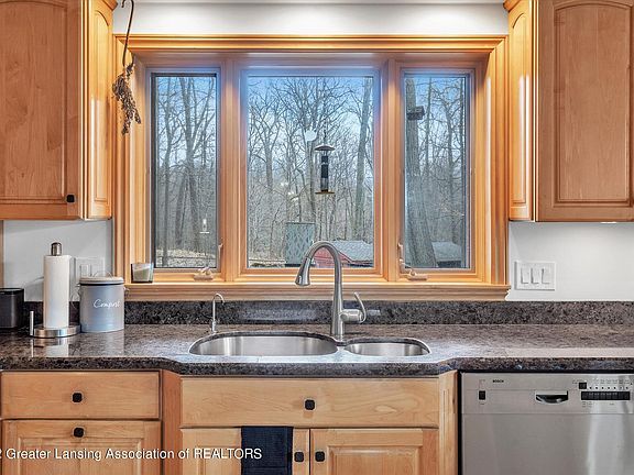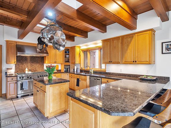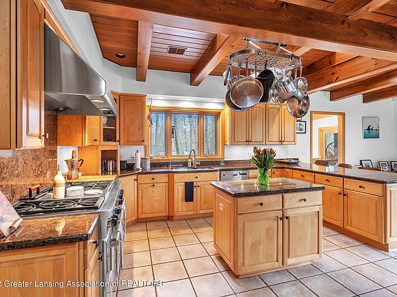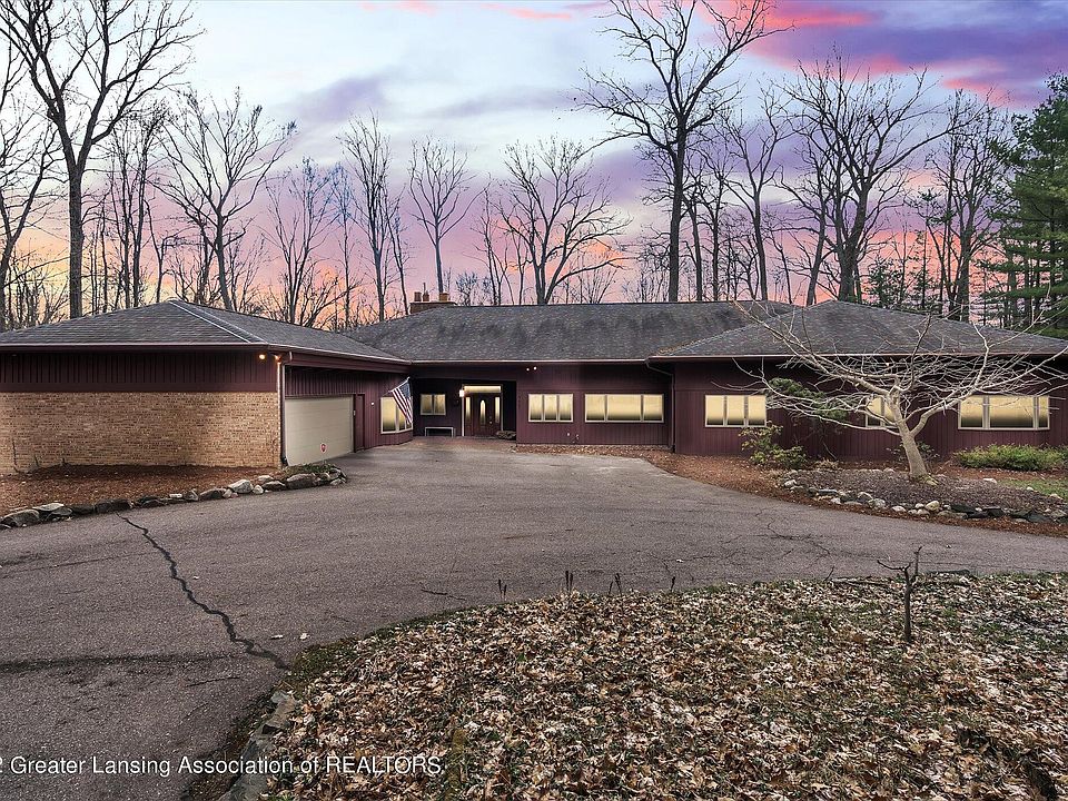 Prestigious mid-century modern home situated on over 10 wooded acres on the Red Cedar River. Built by renowned Swedish architect Walter Laitala for his own personal residence until his death, this historical gem has been featured in publications for its rich history and rare custom-built finishes (be sure to notice one of the publications on the living room coffee table during your showing!). Boasting over 4300 sq ft on the main floor, there is nothing like this home in the Greater Lansing area and features many luxurious qualities: chef's kitchen with subzero refrigerator and a Wolf six-burner gas stove with griddle, breathtaking primary bedroom suite with high ceilings and gas fireplace, attached office with drop down screen, beautiful ensuite bathroom, and walk in closet that is bigger than most bedrooms. Enjoy the scenic nature views during the upcoming spring/summer months in your 3-seasons room....an entertainer's paradise! More finished square footage in the basement for additional recreational space, as well as a wine cellar and gun safe (that stays with the house). Outside, there is an additional 2 car heated garage, storage shed, trails, and gardening areas (that feature morels!). Conveniently located within minutes to highways, restaurants, schools, and entertainment. Asking price is way below replication cost (and the builder used wood from existing land to build this property!) Enjoy your showing and prepare to be wowed.