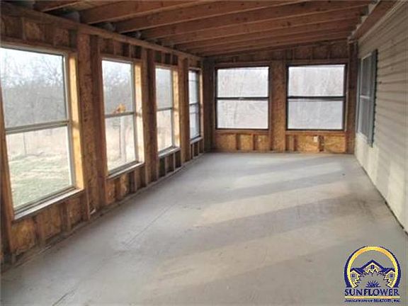 Manufactured home on 5 Acres. Great potential and close to blacktop. Lot of cabinets in kitchen and an enclosed porch.