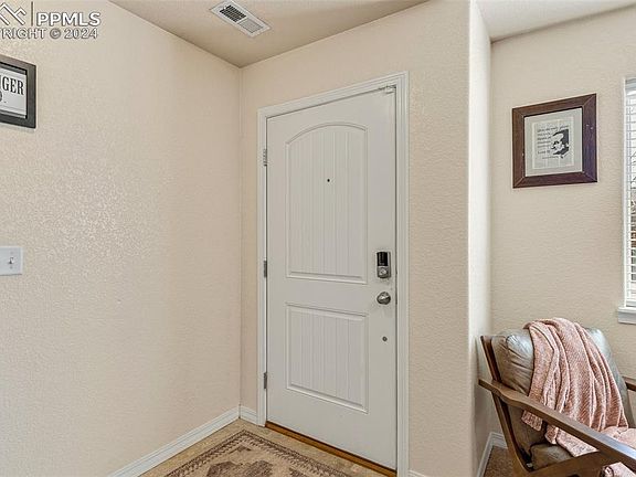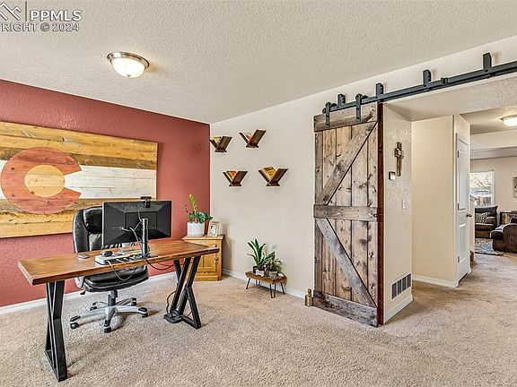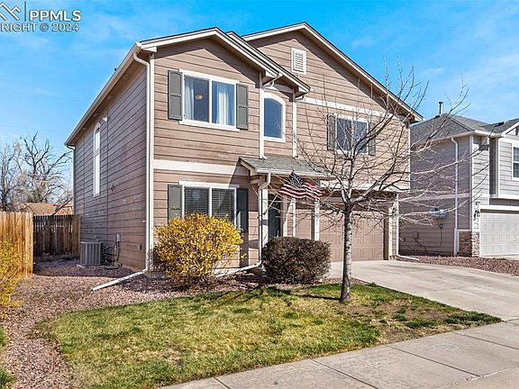 This beautifully appointed 3-bedroom, 3-bathroom home boasts a convenient location within 5 minutes of Fort Carson and I-25. Upon entry, a flexible space can be utilized as a living room or home office, with a modern barn door leading to a conveniently located and upgraded half-bathroom. The open floor plan seamlessly transitions into the expansive living area, ideal for entertaining. The gourmet kitchen features stunning granite countertops and upgraded appliances, perfect for any chef. An adjoining spacious dining area provides easy access to the back patio, perfect for indoor/outdoor living. Upstairs, a large loft area offers additional living space. French doors lead into the luxurious primary suite, complete with a spa-like 5-piece master bathroom and a spacious walk-in closet. The two secondary bedrooms each feature ample closet space, providing comfortable accommodations for family or guests. This meticulously maintained home is ready for you to move in and create lasting memories.