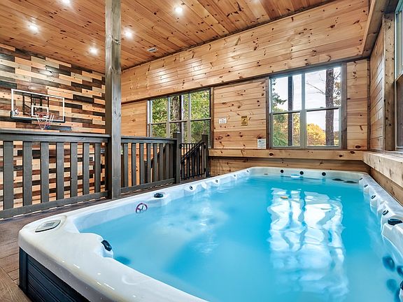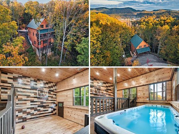 RENTAL PROJECTIONS FROM AVADA PROPERTIES UP TO $148,000 (GROSS RENTS ONLY) UNIQUE STR INVESTMENT OPPORTUNITY!!!!-INDOOR BASKETBALL COURT-INDOOR SWIM SPA-VIEW-THEATER-GAME ROOM-LOCATION-EASY ACCESS-SECLUDED! This newly built (DEC. 22') cabin checks A TON of boxes and is truly a 'stand out' property. Inside there's three levels spread out over 3,200+ sqft and tons of entertainment! 4 bedrooms, 3 full baths, 1 half bathroom, large loft (bonus sleeping space), movie/game room and an indoor swim spa room with a basketball court with top of the line sports flooring! To top it off, it even has a mountain view that can easily be opened up even more by removing a few more trees! Out front there is plenty of paved/level parking for up to 4 cars. The main/entry level has an open concept kitchen, dining, living room, two bedrooms and a full bathroom. A set of double doors leads you out to the covered deck with a hot tub to enjoy the peaceful mountain scene. Upstairs, there are two additional bedrooms with two full bathrooms and a large loft with a queen bed. Downstairs is a large movie / game room, half bathroom, and a separate room with a swim spa and basketball court that can be enjoyed year round! It is currently an active rental, self managed, and has a 5.0 star rating on Airbnb! Set up a showing and/or submit an offer on this unique property before its too late!!