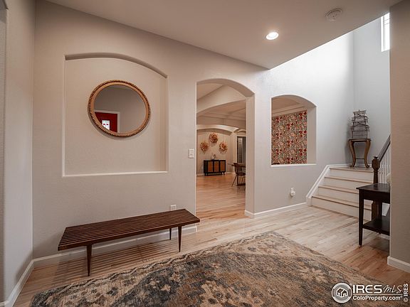 Welcome home! This stunning 5-bedroom, 5-bathroom residence offers an unparalleled blend of luxury, comfort, and convenience. Upon entering the home you are greeted with an elegant entryway leading to the open living room, with vaulted ceilings and large windows that fill the space with natural light and a gas fireplace to stay cozy on cold nights. The gourmet kitchen is a chef's delight, featuring ample cabinet space, extensive quartz countertops, a (walk-in) pantry, double oven and LG appliances. An eat-in kitchen overlooks the backyard and community greenbelt and provides access to the covered patio to soak in the beautiful Colorado sunsets. Retreat to the main floor master suite, complete with a spacious bedroom, a spa-like 5-piece bathroom and 2 walk-in closets. Additionally the first floor of this home features a home office, a formal dining area, a powder room, a laundry/mudroom and natural wood floors throughout. Head up the bright and open staircase to 3 additional bedrooms and two full baths. The expansive finished basement features a spacious common area, a fifth bedroom, a 3/4 bath, a workout or bonus room and unfinished storage space. Complete with 3 garages this home checks all the boxes.