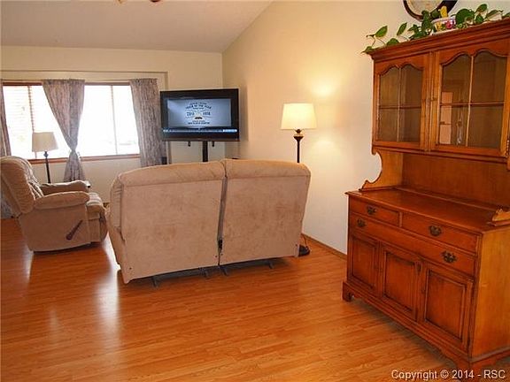 Totally amazing unobstructed views of Pikes Peak and the Front Range from private patio overlooking open space! Sunny, light and bright with an open floor plan. Views from kitchen and dining room. Kitchen has room for small table or island.Enjoy 3 bedrooms including master on the main floor. Master has his & hers closets & bath. Huge game room in basement plus two additional large bedrooms and 3/4 bath. New Stucco 2013. New windows. Newer carpet and flooring. Immaculate large fenced yard w auto sprinklers. Radon System.