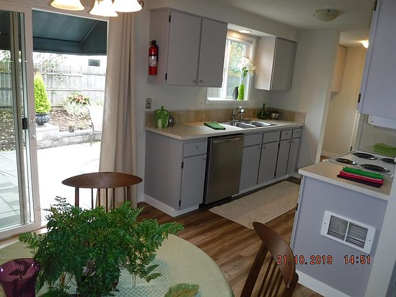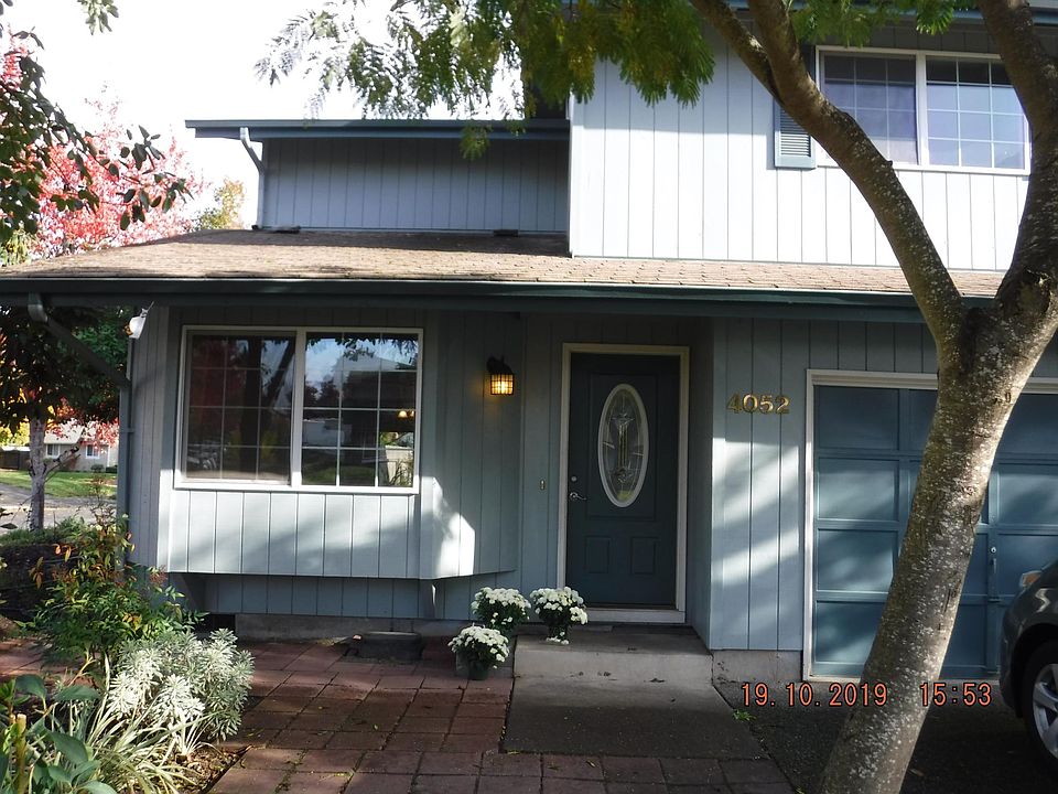 4052 N. CLAREY STREET $1495. Rent for spacious 3 BR, 1.5 baths with attached garage. 3 spacious bedrooms, 1.5 bathrooms Townhouse style home on a quiet cul-de-sac in a pleasant neighborhood near WinCo foods, the Eugene library, indoor swimming pool at Echo Hollow and two lovely parks. Easy access to Beltline freeway and I-5. Your front entry has a leaded glass door with a large carpeted bay window in a great room with lots of natural light. Sliding glass doors over looking your 30' x 15' terraced garden patio. All rooms are windowed for more light and private garden views. The convenient galley kitchen has a stainless steel ultra quiet dishwasher, built-in microwave oven, a stove and refrigerator, with a garbage disposal in a stainless double sink with a pull out sprayer and soap dispenser. Neutral gray tile accents on the kitchen counter tops. Master bedroom is 16' x 14' with a queen-sized 12' long closet. New soft gray carpets upstairs make it warm and quiet. 12' x 11' and 11' x 10' bedrooms have deep closets for lots of storage. 6' doulble-paned vinyl windows brighten your mornings. Room darkening drapes and sound absorbing carpets help you get a good nights sleep. Full bath has large mirrors, safety towel bars, tri-mirrored medicine closet, and rain-glass shower doors. Guest bathroom is conveniently located downstairs next to the garage entry. There's also a separate laundry room with wooden cabinets next to the guest half bath. 24-foot long attached garage has tons of space for your storage or your workbench and tools. Automatic garage door opener makes unloading your car so easy on a rainy day. Well insulated with vinyl double paned windows. A programmable thermostat heats your lower level great room. Upstairs 3 bedrooms and full bath each have their own thermostat for individual settings. EWEB weatherized for added insulation. TERRACED PATIO in a fenced backyard with plum tree, blueberries and raised bed. Landscaped with decorative grasses and red brick walkways. Rent is $1495. with $2000. refundable deposit. Pet rent $25. per pet for prior approved animal. 4052 N. CLAREY STREET is NOW VACANT. LOOK INSIDE ANY TIME for I left the lights on for you. Please apply online at Zillow.com There are also application blanks by the front door for your convenience. Directions: Take Beltline #569 to the Barger exit. Go east past the WinCo shopping plaza at Cubit St. and past the medical buildings to the Clarey stoplight. Turn left (north) at the Evergreen retirement center. Go several blocks to the 4052 cul-de-sac on your left. one year lease Tenant pays utilities No smoking Prior approved small pet $25/mo