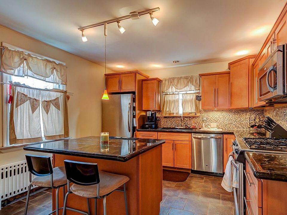 Deluxe kitchen with granite countertops and stainless appliances. Includes large living-room, dining room/office and bedroom. Dishwasher, garbage disposal, gas range, microwave, lots of storage. Garage available. Full basement. This is first floor of a two family house. Convenient location. Heat, water and garbage included, which makes this place a great value!