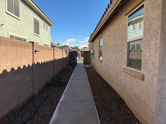 Ready for immediate occupancy, this single-level 3-bedroom residence is situated in the sought-after Las Brisas community. Ideally located on a corner lot within a cul-de-sac, this home features custom shutters, upgraded flooring, and an extended back patio. With a fantastic open floor plan, the property also includes artificial turf and solar panels, ensuring both cost-effective electricity and water bills.