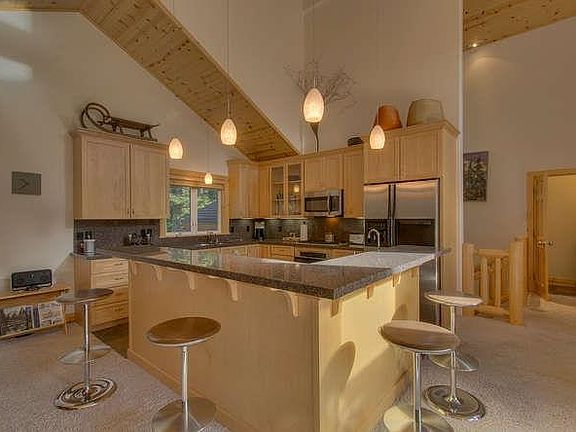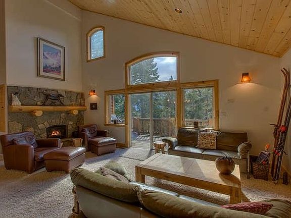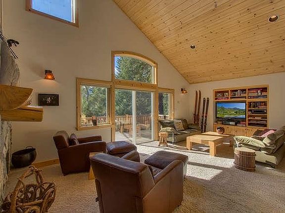 A visually stunning home with views of Twin Peaks and Ward Valley to match. Solidly built by local craftsman builder. 2 bedrooms, 1 full bath and laundry on the ground floor. Large open great room and primary suite upstairs. Primary bedroom and great room have amazing Southern exposure and views of Ward Valley. HOA provides a parking pad at the Sherwood chairlift of Alpine Meadows. Ski from Lakeview chair to the house.