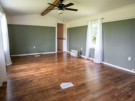 This 2 bedroom, 1 bath home sits on 4.12 acres. There are 3 storage sheds included in this sale. The well is over 300', and the septic is 1,000 gallon concrete, with 450' of leach field. Home sits back away from the road, and the lawn is very level. Inside the home, there is a large kitchen/dining room, and a spacious and bright living room. On the far end of the home, is a laundry area, full bathroom and 2 bedrooms. This home has been tastefully updated, and well maintained.