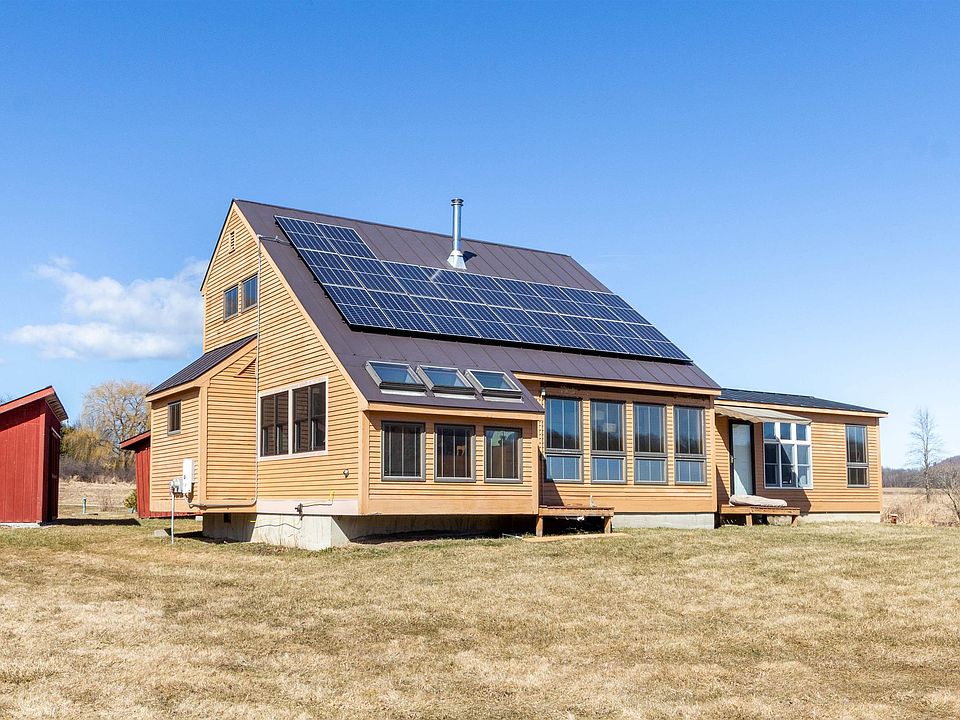 Wonderful country property nestled on 18.6 acres including 28x21 pole barn, 24x9 shed with cement floor & 28x21 garage/barn with 500 sqft accessory dwelling. Plus 3 bedrooms, 3 bath contemporary with leased solar panels. Bright, sunny, passive solar home with tile floors on the first floor, kitchen with plenty of cabinets & counter space, opens to dining room with lots of windows, spacious living room with vaulted ceiling. 1st floor primary suite with plank flooring, 2 walk in closets, & 3/4 bath. Laundry room/den area perfect for office or mudroom. 2nd floor with full bath & 2 guest bedrooms. Pole barn is perfect for vehicles,boats,or storage. Garage/barn has plenty of room for boats, farm equipment, workshop or storage. Accessory apt over the garage perfect for guests or studio with kitchen, 3/4 bath, and separate electric. Gorgeous meadow views overlooking the mountains. Convenient location, minutes to town beach, Lake Champlain, schools, & village. Easy commute to Burlington, UVM Medical Center or Middlebury. Potential of 3 lot subdivision, 5 Acre zoning