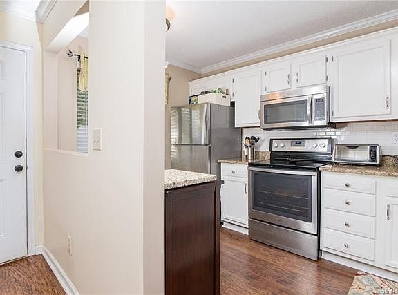 Beautiful move-in ready townhouse on the golf course in popular Raintree. Neutral paint and carpet. Premium wood laminate floors on main level and upgraded lighting throughout. Renovated kitchen w/white cabinets, granite counters, subway tile backsplash, & SS appliances. Kitchen opens to dining room/family room w/stone fireplace & french doors that open to private patio, perfect for that morning coffee! Large master suite w/expanded shower. 2nd bedroom is spacious and has private bath, perfect for roommate or guest suite. Additional storage in back. Refrigerator and range replaced in 2016, HVAC replaced in 2010, water heater replaced in 2012. Close to shopping and entertainment at the Arboretum and Blakeney. Easy commute to SouthPark, Uptown, and Ballantyne. Join the Country Club for golf course, pool, tennis courts and fitness center privileges.