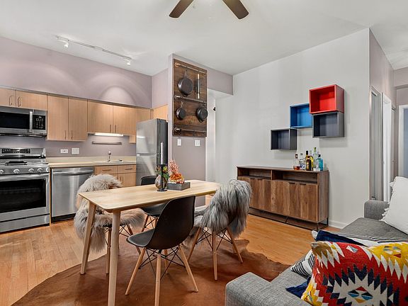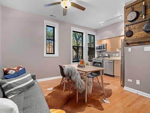 Welcome to Historic Buena Park! This super sunny, high first-floor home is in the rear of the building, away from the street noise. Your own private entry has a few stairs up into a lovely gallery leading into your open concept living space facing the common courtyard and backyard/green space! The kitchen is outfitted with maple cabinetry, newer/upgraded Samsung SS appliances and a custom reclaimed wood pot rack. The bedroom is massive and has a great walk-in closet. Bathroom has shower/tub combo, newer vanity, and barn door entry. Hardwood floors throughout and freshly painted. In unit w/d. Storage included. Desirably located in Lakeview/Buena Park with EZ access to Sheridan Red line, LSD, Whole Foods, Target, the lakefront and Wrigley Field. See your new home today! A preferred lender offers a reduced interest rate for this listing.