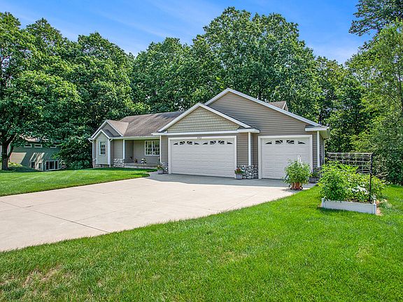 Beautiful and inviting home in Dorr! Lots of room and places to go for everyone. 5 bedrooms, 3 full baths, 3 car garage! Great layout on the main level with cathedral ceiling and recessed lighting. Cheerful living room, dining area with a slider to the deck, master bedroom with large closets. Lovely woodwork, handsome cabinetry, and ample storage throughout the house. The lower level features a super spacious family room and a rec room. Neat and clean, well maintained. Laundry hook up available on main level too. Wonderful back yard, surrounded with trees. You will want a bird feeder! Please no Sunday showings. Sellers reserve the Curtains, Washer, Dryer, Peonies, Trellis, and Bird Bath.