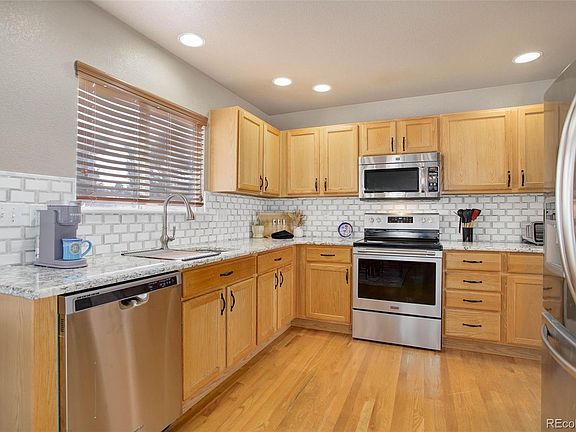 Welcome to this bright and inviting 2,725 square foot home, perfectly situated adjacent to Highland Park and a greenbelt, offering a tranquil setting. The covered patio is ideal for outdoor relaxation and entertainment. A welcoming two-story entry guides you to either the dining room or the cozy family room with a gas fireplace. The kitchen, featuring a breakfast nook, boasts granite countertops, a tile backsplash, and stainless-steel appliances, ensuring a stylish and functional cooking area. The primary suite provides a private retreat, while the additional four bedrooms, a full bath, and convenient upstairs laundry cater to your everyday needs. The finished basement adds versatile living space, enhancing the home's overall appeal. Located near Quincy Reservoir and Southlands Shopping Mall, this property is an exceptional choice for homebuyers seeking Cherry Creek Schools.