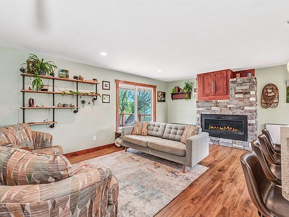 This lovely 4-bedroom, 2-bathroom home in the highly sought-after Steamboat II neighborhood has been thoughtfully updated to modernize and maximize space. The driveway has been leveled and repaved, the home has a fresh coat of paint both in the interior and exterior, light fixtures have been updated, and the lower-level garage has been converted into additional bedroom or living space. From the newly extended front entry, head up the stairs into the heart of the home. The open floor plan is inviting and provides easy transitioning from cooking up a feast in the kitchen, to gathering around the table for a meal, to snuggling up on the couch by the fireplace. From the living room, step through the new sliding glass doors onto the back deck for views of the ski resort in the distance or for some grilling and alfresco dining. The deck overlooks an expansive and fully fenced backyard, which offers plenty of shade with mature trees, foliage, and landscaping. The home has two large sheds for storage, plenty of room for off-street parking and even space to tuck away a camper or snowmobiles. The lower-level primary bedroom includes a five-piece ensuite bathroom and a walk-in closet. Across the hall from the primary bedroom is the newly converted secondary living area or bedroom with a storage room and space for a home office. The two additional bedrooms with a shared bathroom are located on the upper level. From the home, it is easy to connect to the neighborhood trail systems for biking and walking in the summer and cross country skiing in the winter, and the community outdoor ice rink is just down the road, plus it has close proximity to the new Sleeping Giant School. Do not miss out on the opportunity to call this charming house - home sweet home!