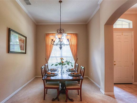 Located in the sought after Rock Springs Ridge neighborhood in Apopka! This 3 bed, 3 bath home with a bonus room is spacious and bright, with a large open floor plan perfect for entertaining. The formal dining and living rooms are perfect for your next dinner party. The well-sized kitchen, with its cherry cabinets, ample counter space, huge closet pantry and an island, looks out over the dining nook and family room. Light streams in from the wall of sliding glass doors, which look out onto the screened back patio and large backyard. The spacious master suite features his-and-her walk-in closets, an en-suite bath with garden tub, tile shower, dual vanities and sliding glass doors that open out to the patio. The two additional bedrooms are connected by a bonus flex space, perfect for a playroom or a home office. With a three car garage and indoor laundry room, there is no shortage of space and function. Walking distance to the neighborhood Italian restaurant, and just a short drive to shopping, dining, and the State Park, means this location can't be beat!