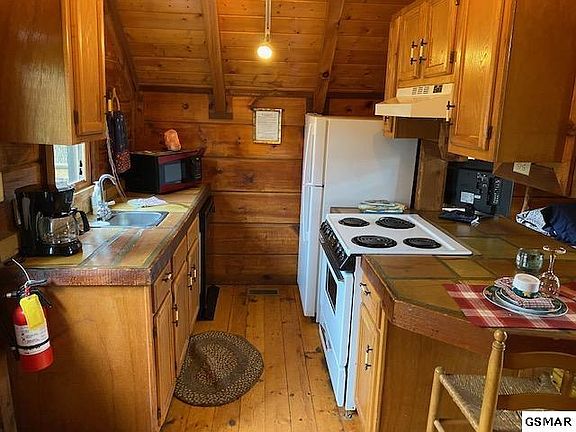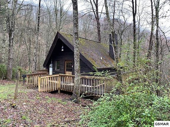 This is a one room cabin. This 1 bedroom 1 bath log cabin home is located in a quaint and cozy area just minutes from Pigeon Forge and Gatlinburg offering plenty of peace and quiet. Featuring cathedral ceilings, full kitchen with breakfast bar, natural stone wood burning fireplace,wood floors throughout, romantic double whirlpool tub and wraparound deck with hot tub and wooded views. All information was taken from the county tax records and the buyer should verify all information. The well is shared. There will be a HOA that has not been been set up yet for road maintenance.
