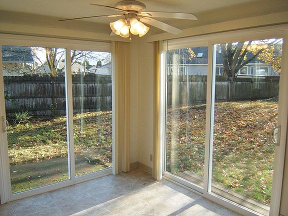 4054 N. CLAREY STREET, EUGENE Please STOP BY and look in the windows since it's now vacant and just painted. New heat pump cools everything!! Great fenced back yard with organic fruit trees and wrap around patio. Living room with bay window seat. Bright kitchen with tile floors, laundry room and downstairs bath. 3 Spacious Bedrooms 1. 5 Bathrooms Big BAY WINDOW with window seat! Great room style with views to the lovely wrap around patio with raised bed. OVERSIZED BEROOMS : Master bedroom has 12 foot long mirrored closet, overlooks the big back yard. Galley kitchen with smooth top stove Large refrigerator. Built-in microwave. Ultra quiet dishwasher. Double stainless sink with sprayer faucet. Double-paned vinyl insulated windows & extra insulation. Garage with WORK BENCH and storage shelves. Convenient inside laundry room with cabinets. Fenced, landscaped yard with cherry, apple, pear, and plum trees. Pleasant cul-de-sac in single family home neighborhood. Walk to 2 parks, Winco shopping center, Echo Hollow indoor swimming pool & Eugene library branch. Easy access to Beltline and I-5. Rent: $ 2050. Deposit: $2000. Pet rent $25. each animal. References checked for quiet clean pet. Applications are beside the front door. $25. pet rent for SMALL QUIET PET WITH REFERENCES AND PRIOR APPROVAL. GOOD CREDIT REPORT AND REFERENCES REQUIRED. No smoking.