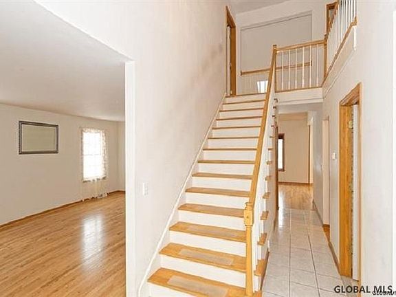 The beautiful Pine Bush area of Guilderland is home to this 4 bedroom, 3.5 bath home situated on a lovely private lot in Blackberry Estates. This home features newer oak flooring in living room & family room. The bright kitchen includes SS appliances including a 5 burner gas cook-top & double wall ovens! Adjoining family room has soaring vaulted ceilings & wood burning fireplace. First floor office space overlooks beautiful deck & yard. Large master w/whirlpool tub, 2 additional bedrms. share a bath. Fabulous finished basement is way more than a man cave! Many rooms and a full bath. Current owners have installed a new furnace, water softener, extended the deck and up-graded the landscaping. Utility costs $105/month! Attached 2-car garage has an additional 3rd door. Generac Generator. Excellent Condition