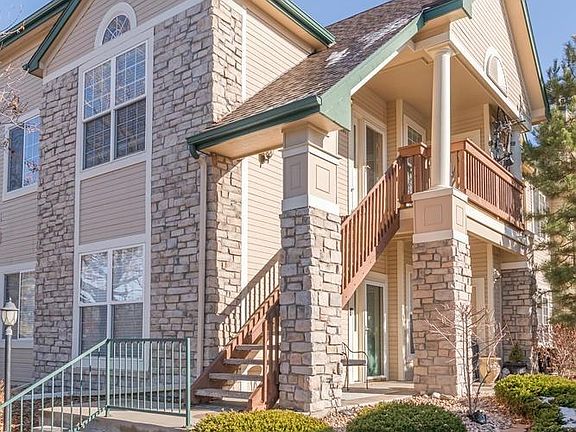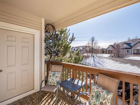 Beautifully maintained 2nd floor corner unit at Meadow Hills! Light and bright interior with vaulted ceilings, lots of large windows, and fresh neutral paint colors throughout. Newer stainless steel appliances in the spacious kitchen with breakfast bar, plus a large pantry for food storage down the hall. Adjacent to the kitchen you'll love the family room with newly tiled gas fireplace, along with another flex space that's perfect for a dining table or office nook. Natural light pours in to the south-facing master bedroom, complete with soaring ceilings, his-and-hers dual closets, and a private 4-piece bath. On the opposite end of the unit you'll find a 2nd spacious guest room, a large 3/4 guest bathroom, and the pantry and laundry area-- LG washer and dryer set is included! End your day relaxing on the covered deck outside. Reserved carport space right down the stairs, top rated Cherry Creek schools, and a wonderful community with great neighbors that's close to everything....hurry!!!