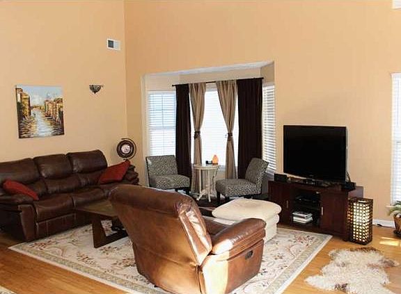 Must See End Unit Town Home with 2 Sides Brick*Newly Painted Cement Siding*Tons of Upgrades*Bright & Open Floor Plan with Many Windows*Hardwood Floors*2 Story Great Room Opens to Kitchen with Granite Counters, Tile Back Splash with Eat-In Area*Room Enough for Bar Stools at Kitchen Counter*Cozy Fireplace in Great Room*New Interior Paint*New Double Garage Door*Wide Driveway*New Windows*Extended Patio with Fenced Back Yard & Fire Pit*Large Master w/Trey Ceiling*Spacious Walk-In Closet*Master Bath with Long Dual Vanity, Garden Tub, Shower, Ceramic Tile Floors in All Baths*