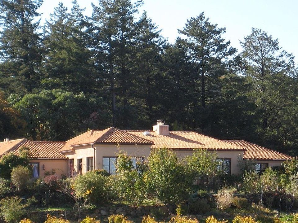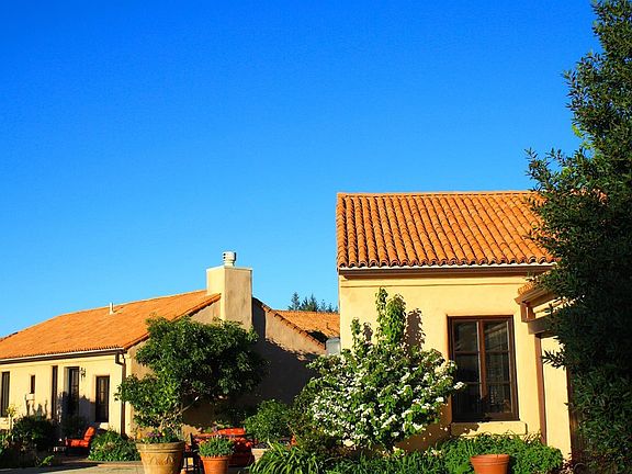 Elegant Villa with views and vineyards. Custom straw bale home with antique windows and doors. Beautifully furnished. 4BR and Separate guest cottage.